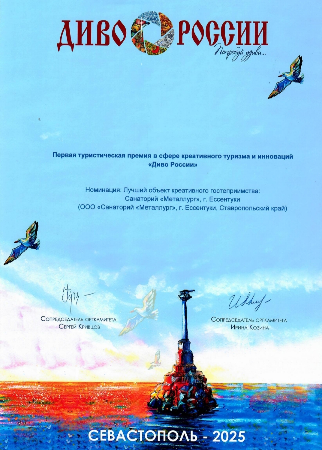 И внимание: первая туристическая премия в сфере креативного туризма и инноваций «Диво России» — в копилке санатория!