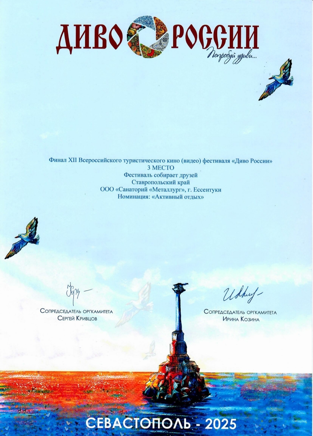 ООО «Санаторий «Металлург» — в числе победителей XII Всероссийского туристического кинофестиваля «Диво России», заняв 3 место.